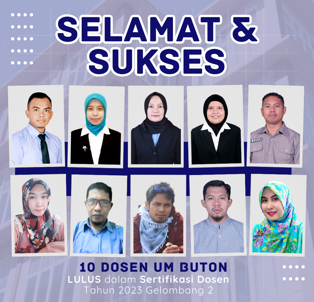 Universitas Muhammadiyah Buton (UM Buton) dengan bangga mengumumkan bahwa 10 dosen teladan telah sukses lulus dalam Program Sertifikasi Dosen Gelombang