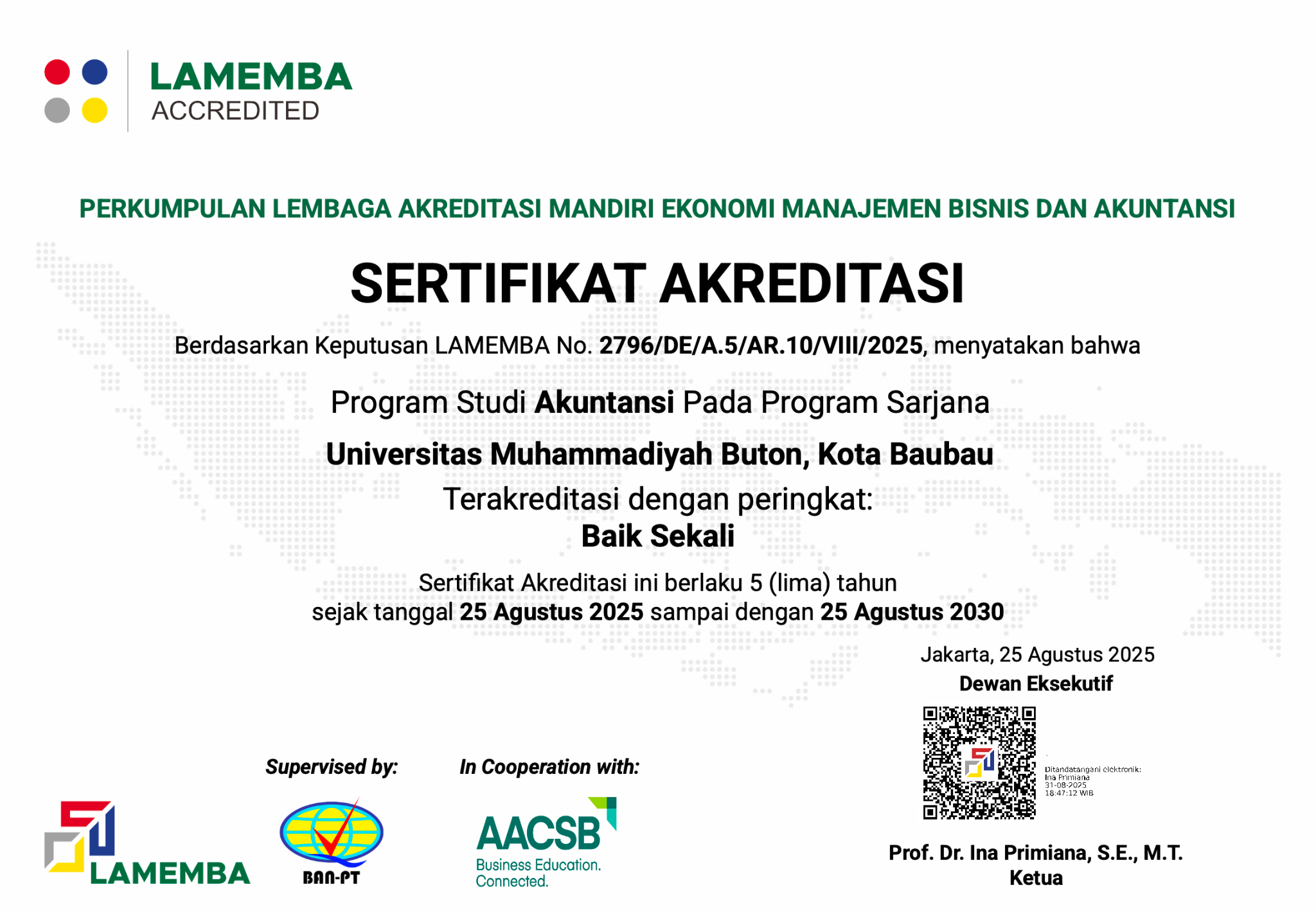 Universitas Muhammadiyah Buton (UM Buton) kembali menorehkan prestasi penting. Program Studi S1 Akuntansi resmi meraih akreditasi “Baik Sekali” dari